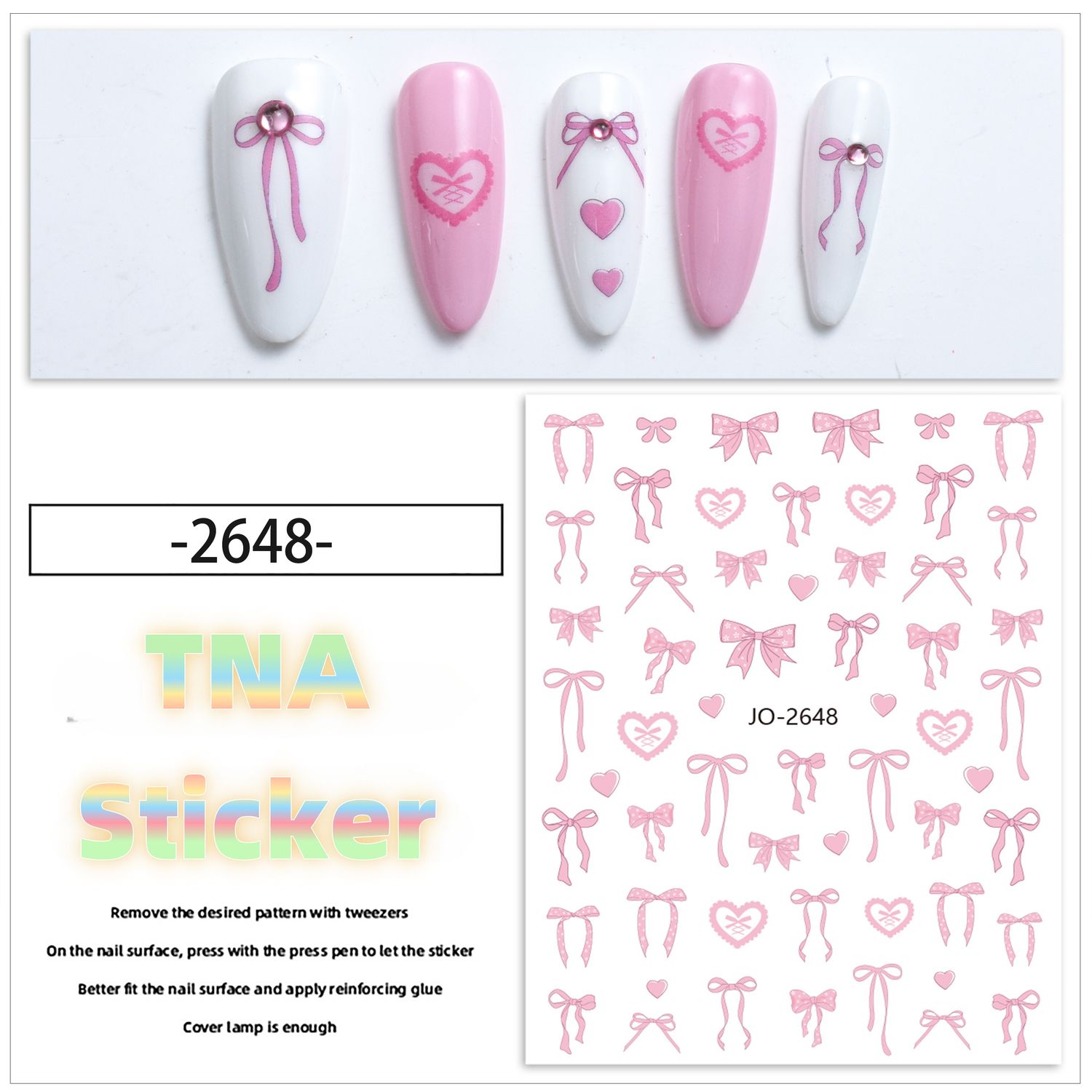 3. Use tweezers to gently remove the prepared sticker, place it on the nail and press.