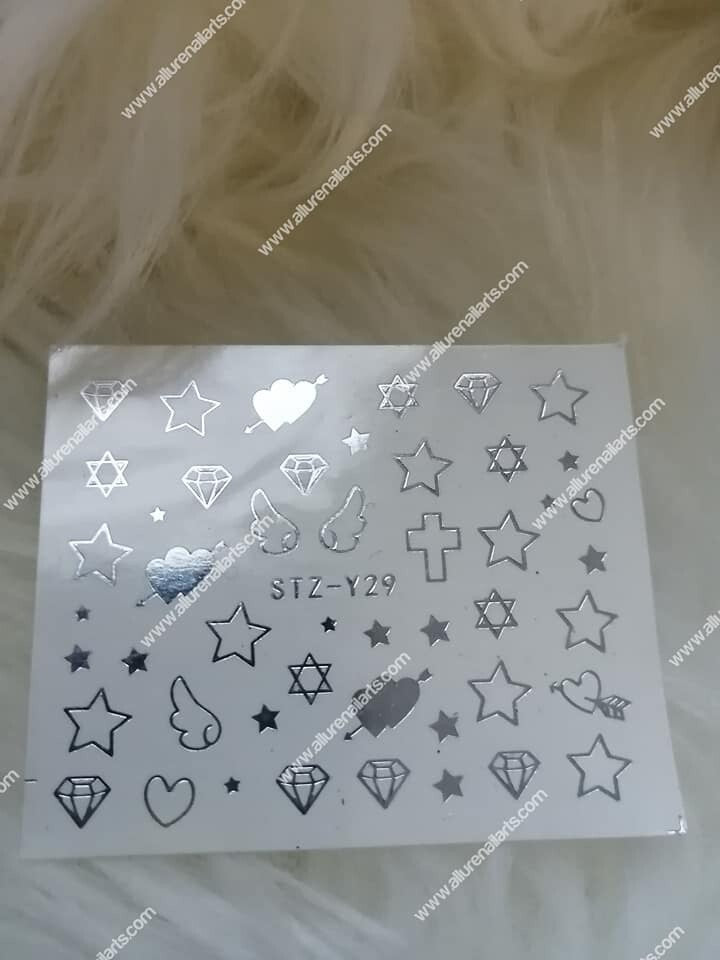 Silver Metallic Diamond Heart Wings Cross Star Nail Decal