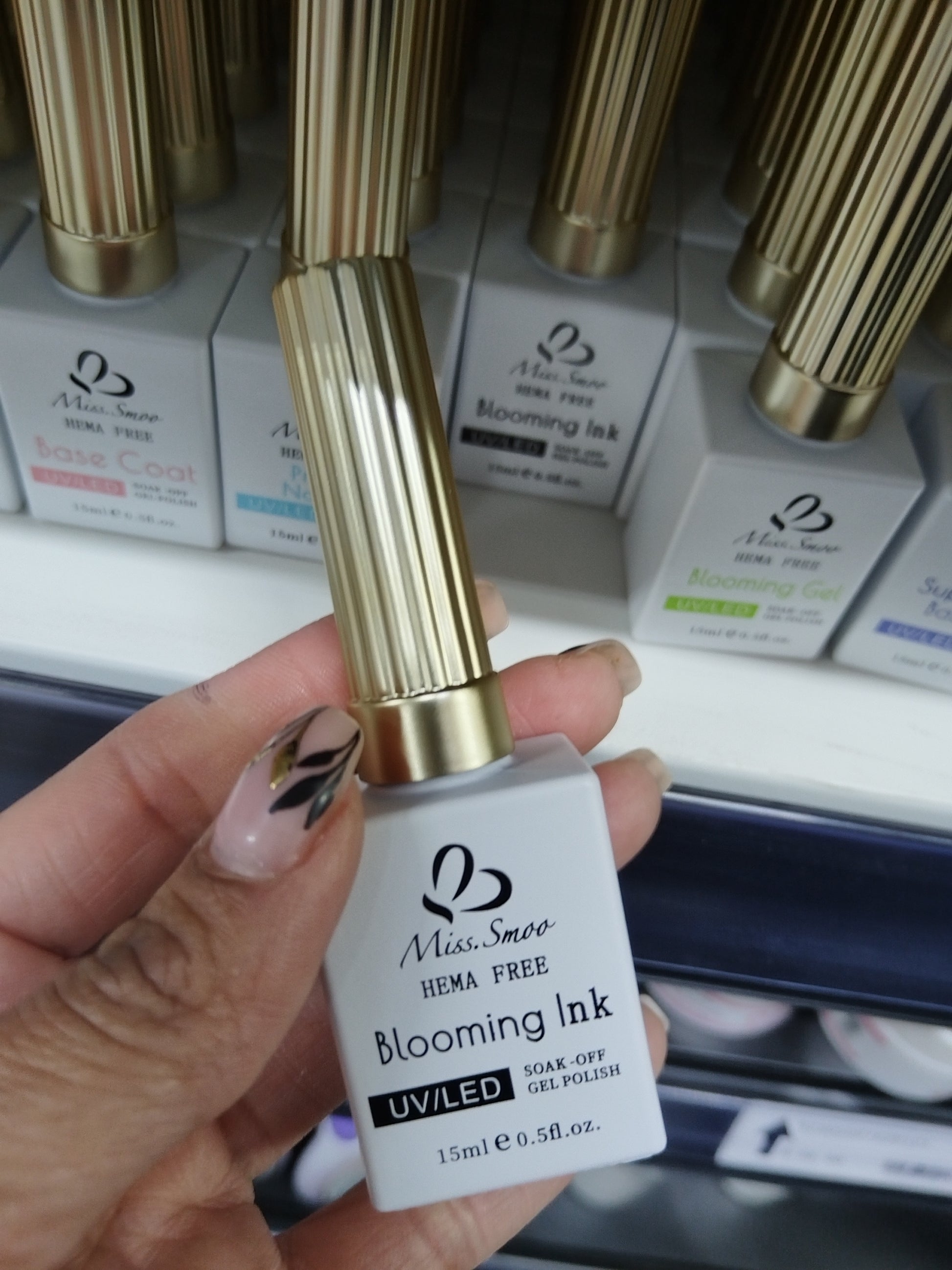 Smoo Blooming Ink is a professional-grade nail art pigment designed to create striking blooming effects with ease. Its concentrated formula reacts with gel polish to produce smooth, flowing patterns and intricate designs. Ideal for advanced nail technicians, this ink enhances creativity while delivering vibrant, long-lasting results that elevate any manicure.